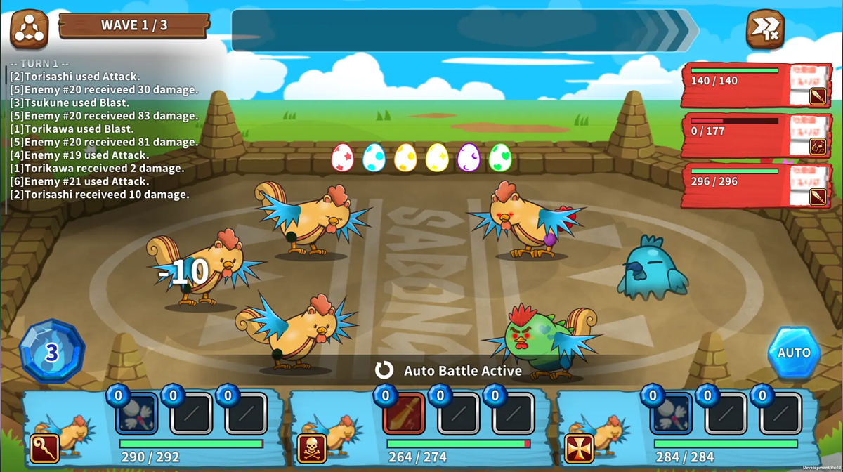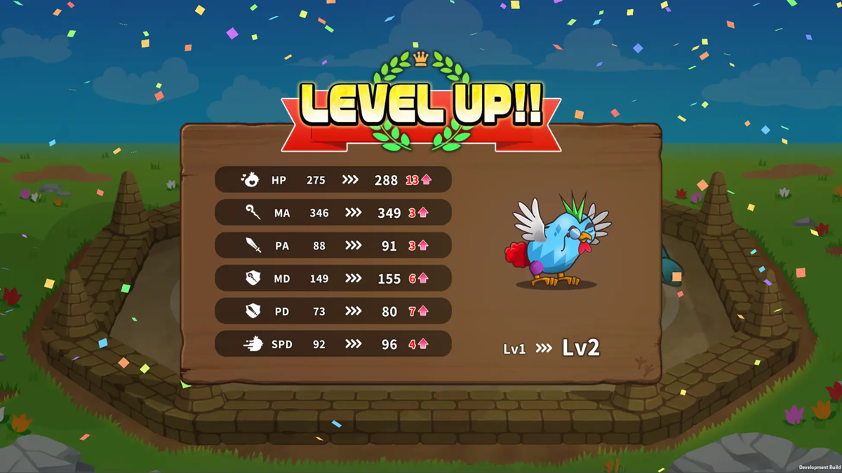 鶏は、バトルでのレベルアップや各種トレーニングを通してステータスを強化できる。
