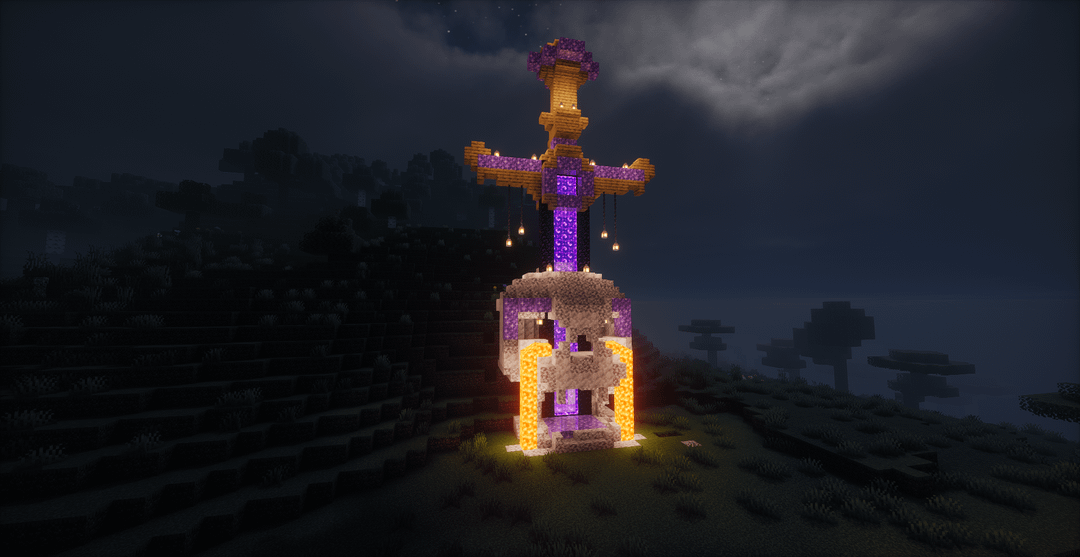 カスタムネザーポータルを構築しました。私はこの構造を古代の門、トロフィーのようなもの、警告のようなものにしたかったのです。そこで、頭蓋骨を貫く剣を組み合わせました。目標は、Minecraft で機能しているように見せながら、少しのダーク ファンタジー エネルギーを持たせることでした。 by CupNational8078