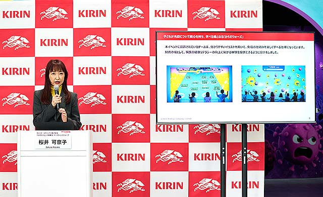 ゲーム体験やパネル展示を通して、子どもに免疫機能について興味を持ってもらうとともに、家族全体の健康づくりにつなげていけたらと思っています」(キリン 桜井可奈子さん)