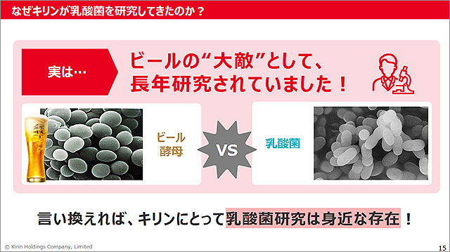 「免疫をケアするためには生活習慣を整えるのはもちろんですが、キリンは生活習慣とともに手軽にケアできる方法を考え、ひとつの答えとして「乳酸菌」にたどり着きました。