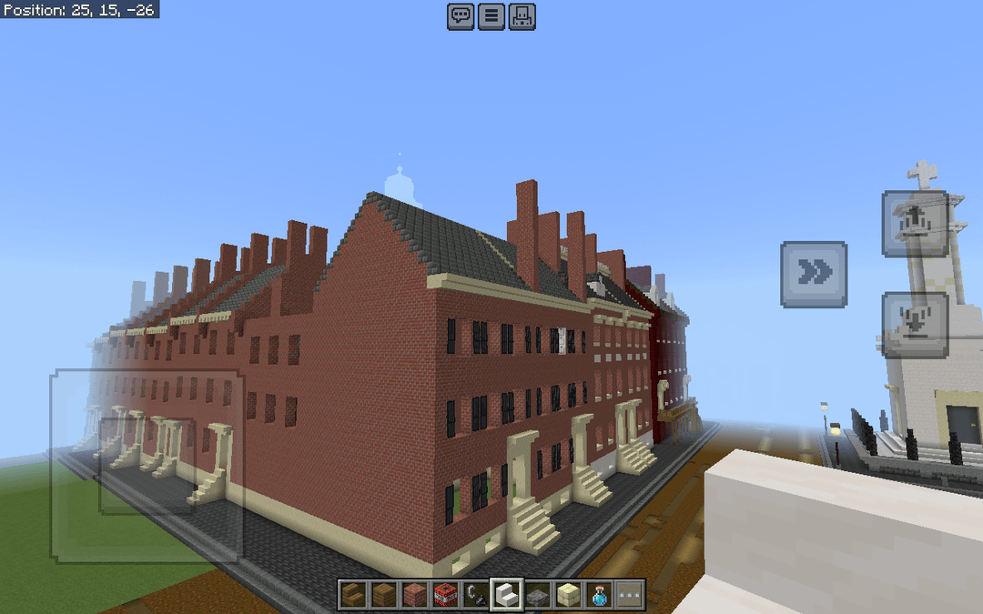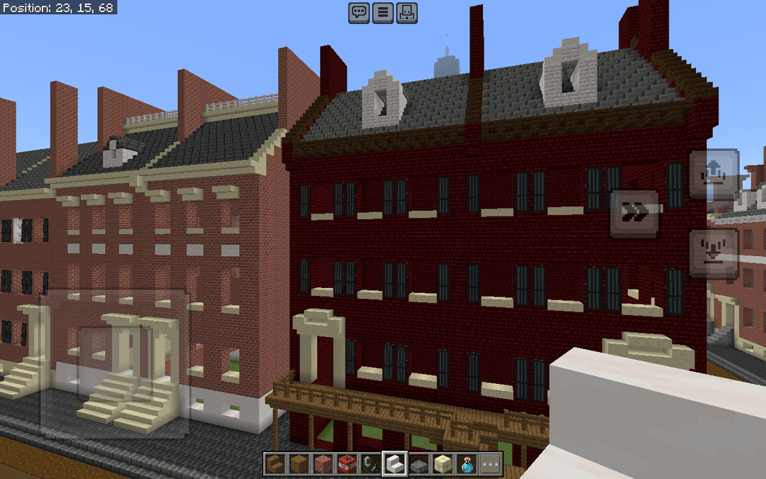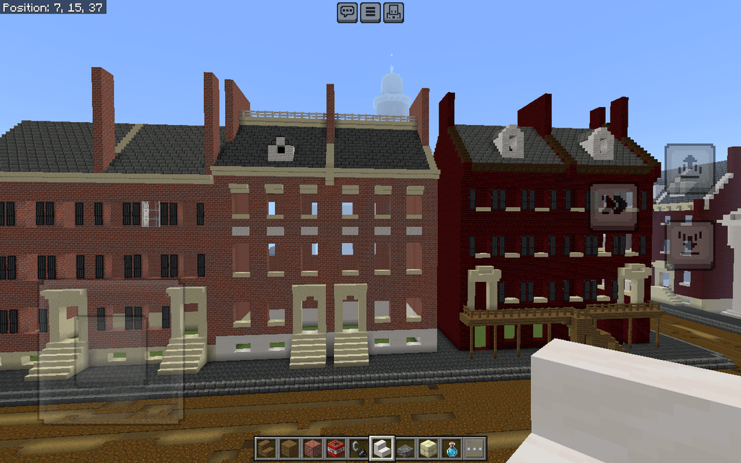 連邦様式のレンガ造りの長屋で、改造されたバナーを窓シャッターとして使用