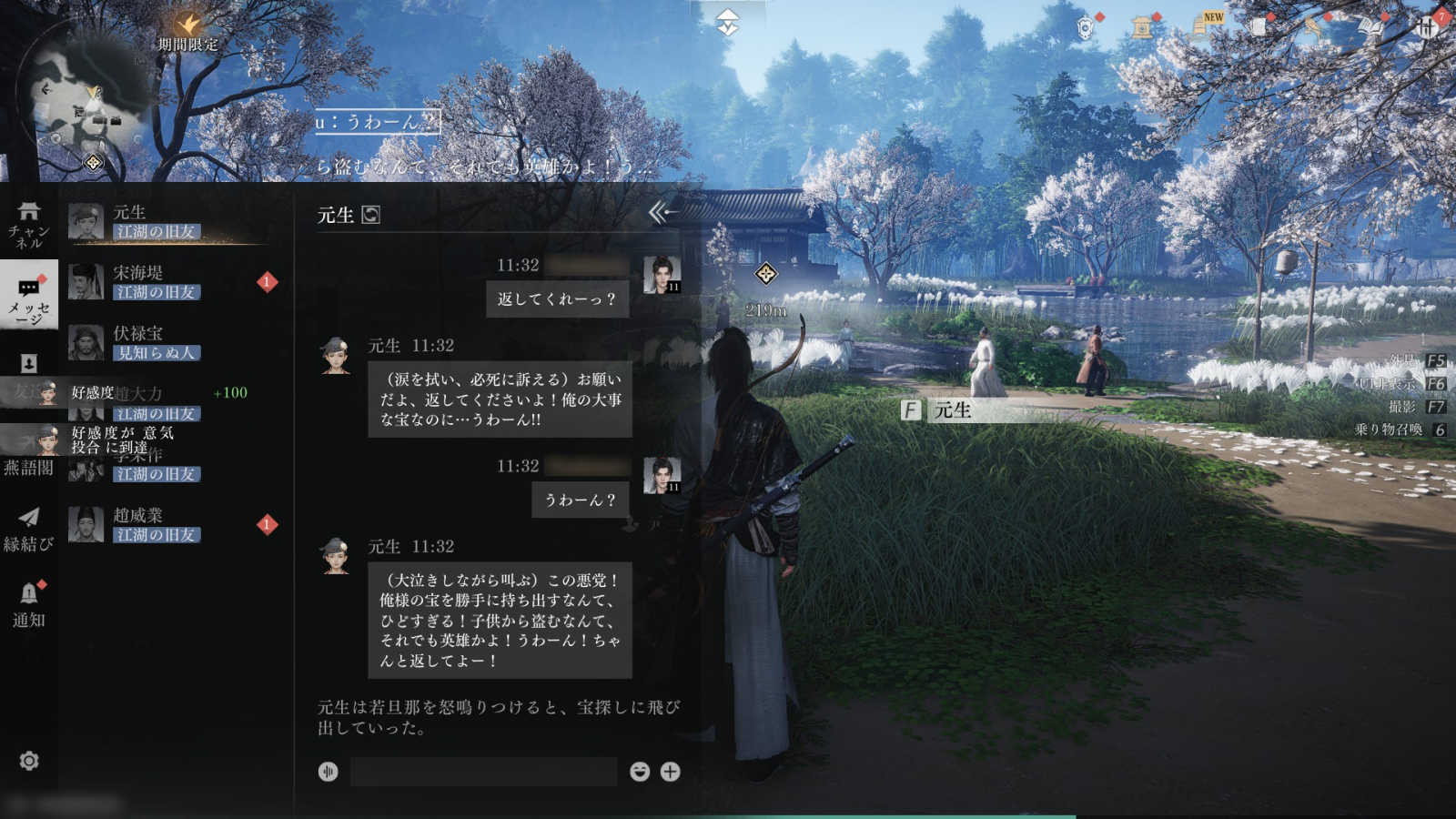そのため、いずれも万能の攻略法とはいえない様子だ。初めから正攻法でチャットする方が却って手早く江湖の旧友になれる場合もあるだろう。とはいえ困惑したりあっさり騙されたりするNPCの反応にも一見の価値はあるかもしれない。
