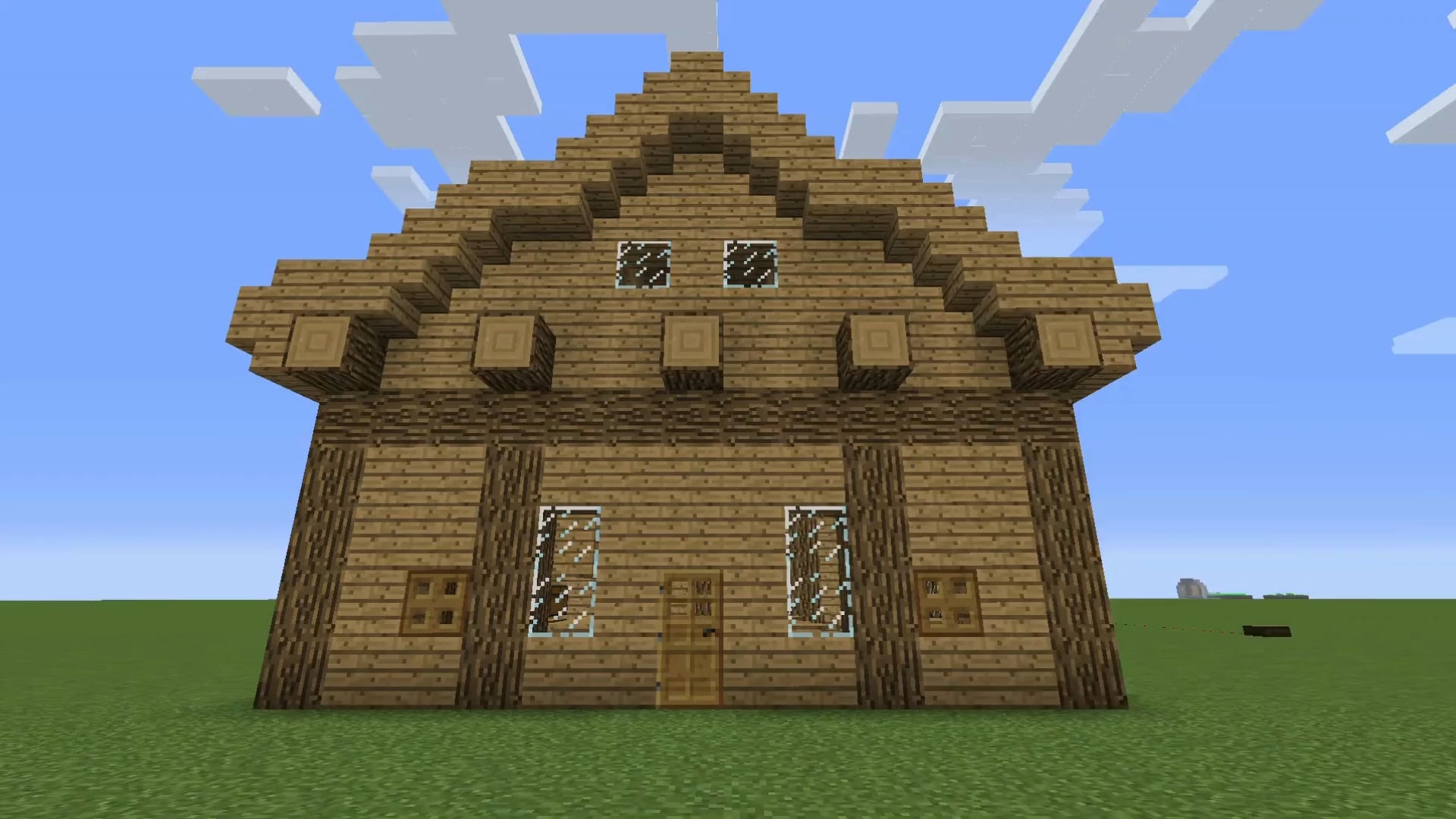 これは私の最初のプロジェクトです。これまで特に美しいものを作ろうとしたことはなかったので、自分が達成したものにとても満足しています、いや、誇りにさえ思っています。これは床梁が目立つ中世ヨーロッパの実際の家を表現しようとしたり、木の柱を増やしたりしたからにすぎませんが。もちろん、細かい部分はリアルに対応していない部分が多く、垂木トラスの作り方もわかりません(1.12.2 では奇妙に見えるでしょう)が、満足しています。