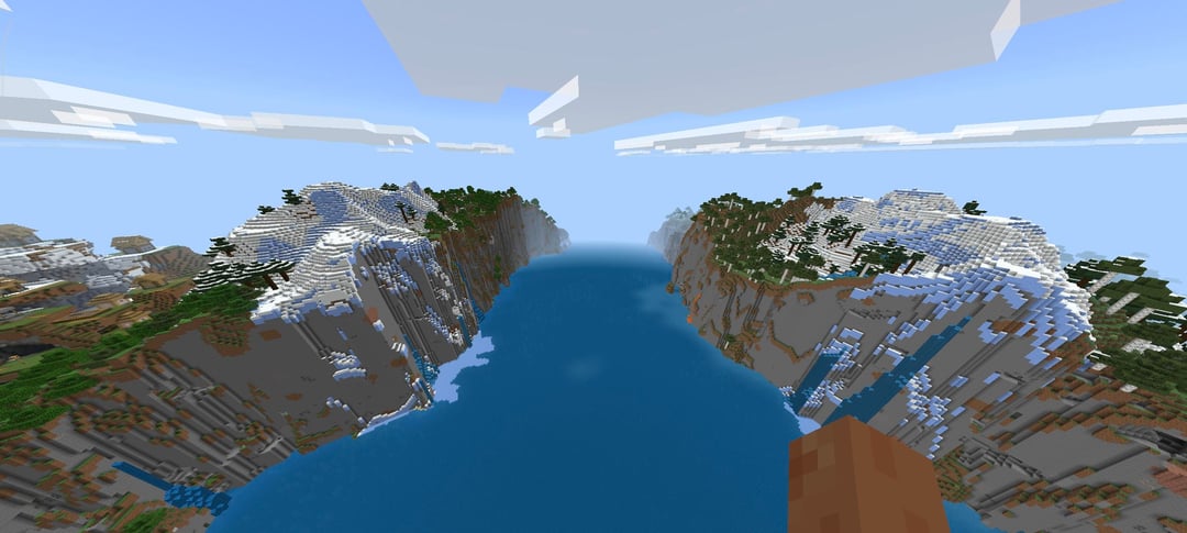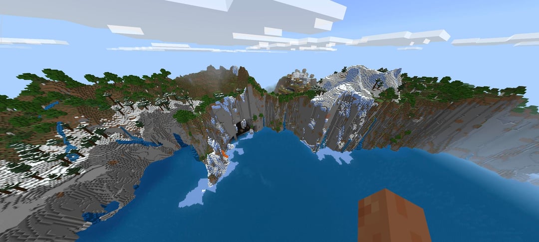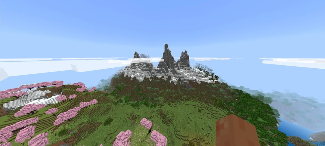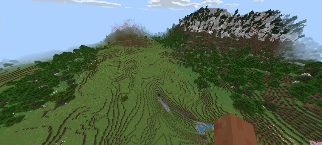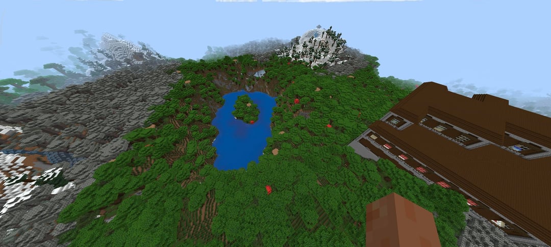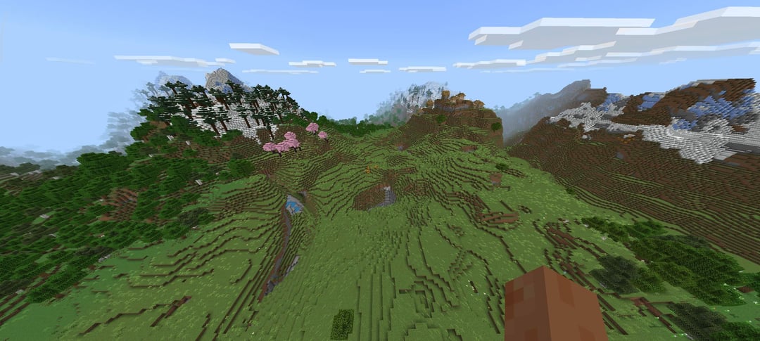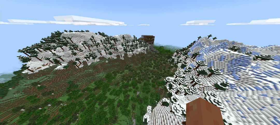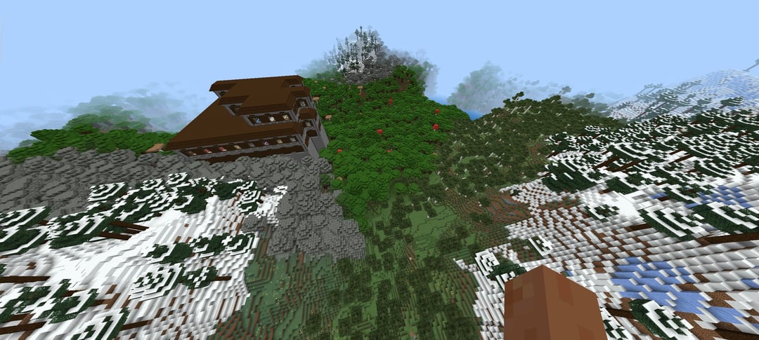 非常に素晴らしいシードです。邸宅に続く谷から始まります。その谷の手前には村と非常識な崖の後ろに開けた野原があり、それを囲むのに美しい山もいくつかあります。また、スポーンから 2k 以内に多くのバイオームがあります (ちょうどいい大きさのキノコ畑、砂漠と悪地、沼地、雪に覆われたバイオーム)