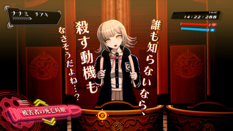今回は、死因が失血死ということだけが判明している状況にも関わらず、あるキャラクターが“凶器は包丁”だとハッキリ言ったところを論破し、なぜ凶器を知っているのかを追求する――という場面でモノクマからストップが入る演出で試遊版は終了となった。この試遊版はあくまで本作のゲーム性を体験するのが主な内容となっており、製品版の内容とは一切関係は無いとのことだ。