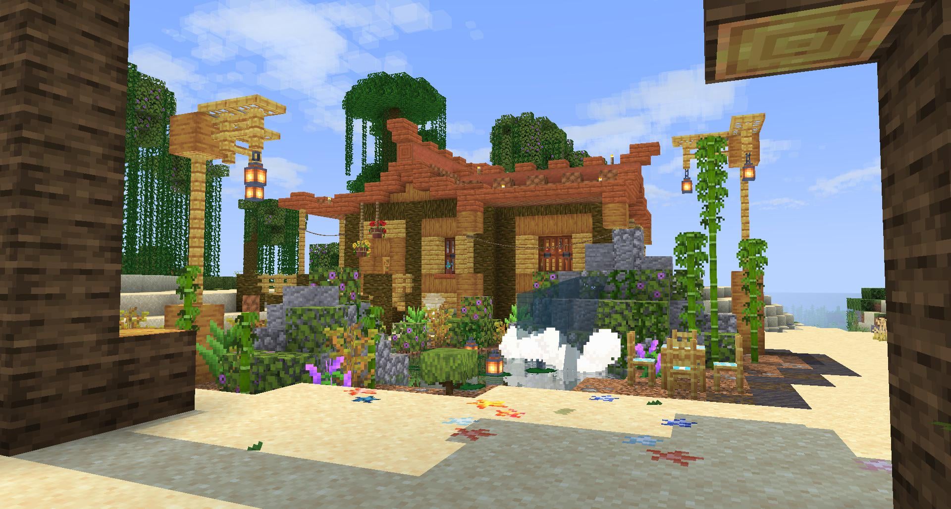 BdoubleO100 が自分で描いた絵を描いたビデオを見て、インスピレーションを感じました。スターターベースとして誤って非常にかわいいビューポイントを作成してしまい、その角度から見てまともに洗練されているように見えるものを構築しようとしました:) 背景に巨大なカスタムツリーを追加する予定ですが、それにはある程度の計画が必要です(ファブリックモッドローダー、シェーダーパックはファブリック1.20.1用のミニチュアシェーダーであり、他の多くのモッドも同様に関係しています)