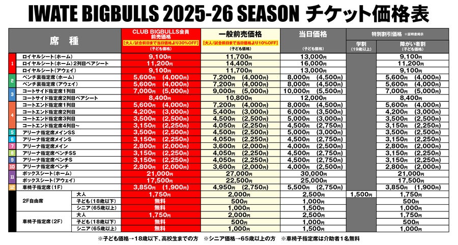 2025-26seasonは、CLUB BIGBULLS ぷるぞー会員(高校生以下/会費1,500円) ・シルバー会員(65歳以上/会費1,500円)の方は2F自由席は無料で観戦が可能です!