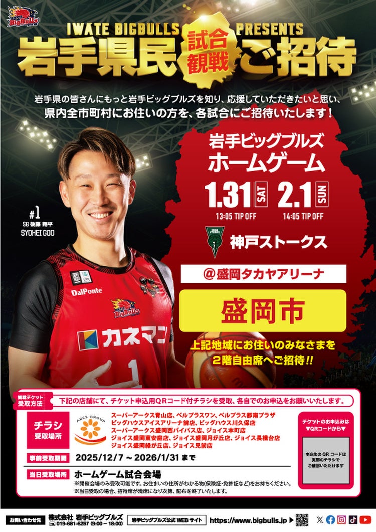 岩手ビッグブルズのホームゲームは全試合公式リセールサービスを導入いたします。