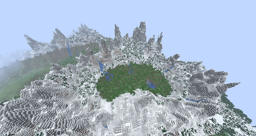 雪に覆われたバイオームの中に、囲まれた円形の山地が 2 つあり、それぞれの中央に緑の草が生えているのを見つけました。サバイバル世界で居心地の良い拠点を構築するのに最適です。 シード: 3576836943555518759 コード: 大 1826 / 134 / -6381 / ////// 非常に大 2337 / 166 / -6094 by Lumpy_Oven4196