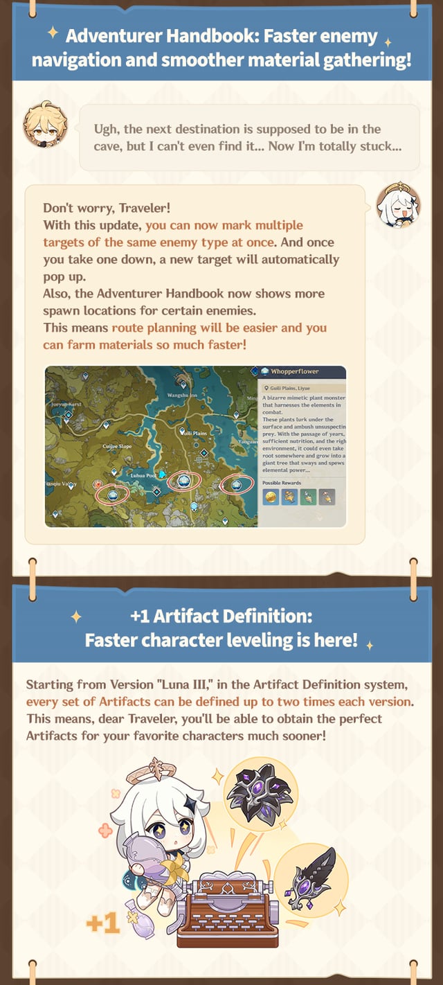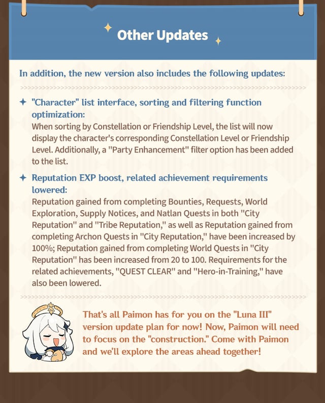 親愛なる旅行者様、バージョン "フォーム番号" 明日(12月3日)到着予定です!新キャラクター以外にも、新たな "魔女の宿題" ゲームプレイや新しいクエストのほか、このアップデートでは以下の内容も期待できます。さあ、パイモンをじっくり見てみましょう~ by genshinimpact