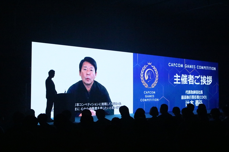 主催者であるカプコン 代表取締役社長 最高執行責任者(COO)の辻本春弘氏のビデオメッセージ