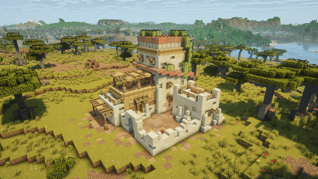 私の (わずかに改造された) シングルプレイヤー ワールドのためのゲーム初期のサバイバル ベース デザイン。