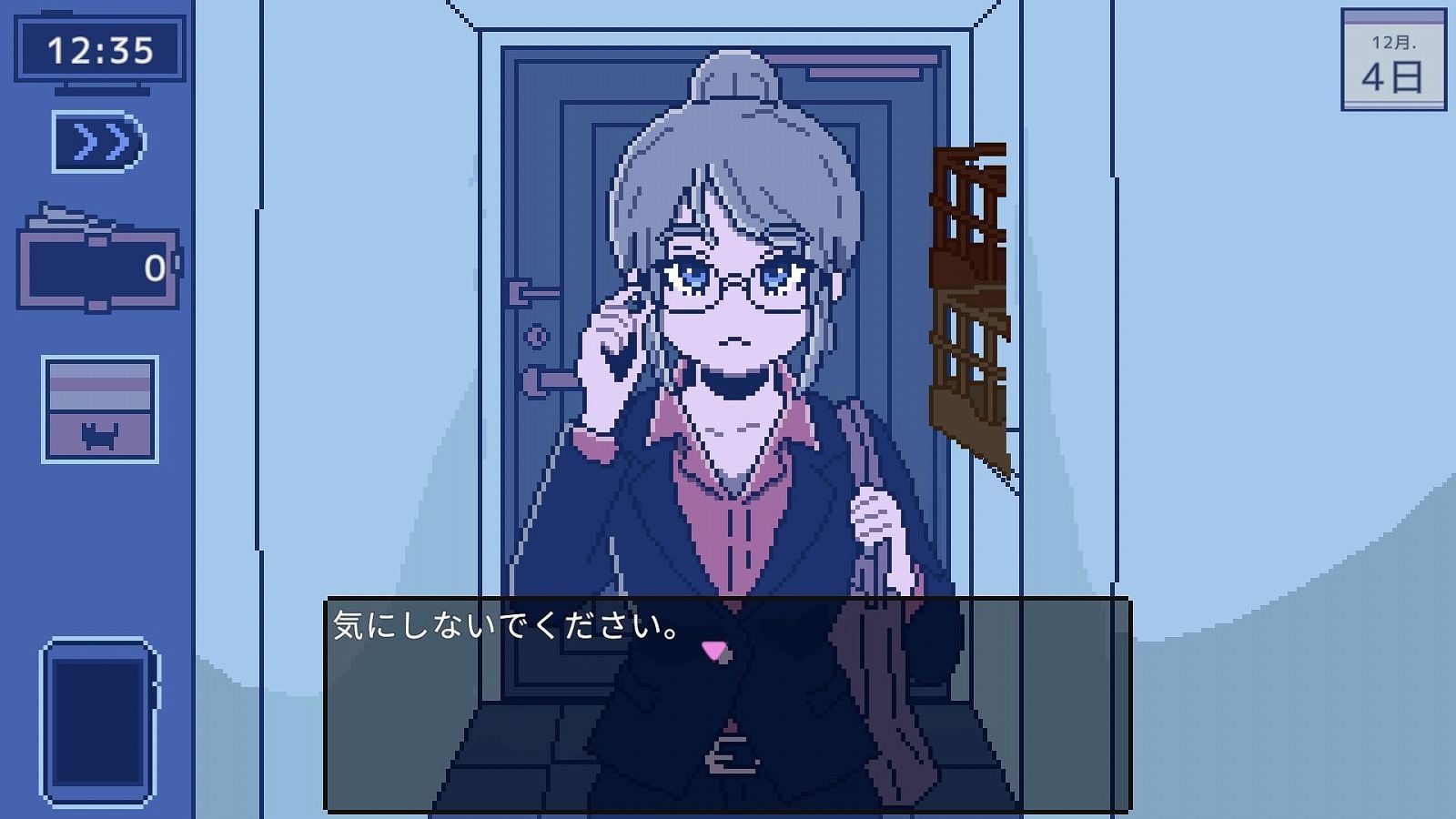 本作では主人公の部屋に酔っ払いのお姉さん、ペットの鳥を探している男、旦那からのDVに苦しんでいるお隣さんなど、数多くの訪問者がやってくるという。彼らと「無視する」か「関わる」かを選択することで、主人公の運命が決まるそうだ。なおSteamストアページの公式説明には「訪問者には、どうかお気をつけください。」と不穏な一文も添えられている。