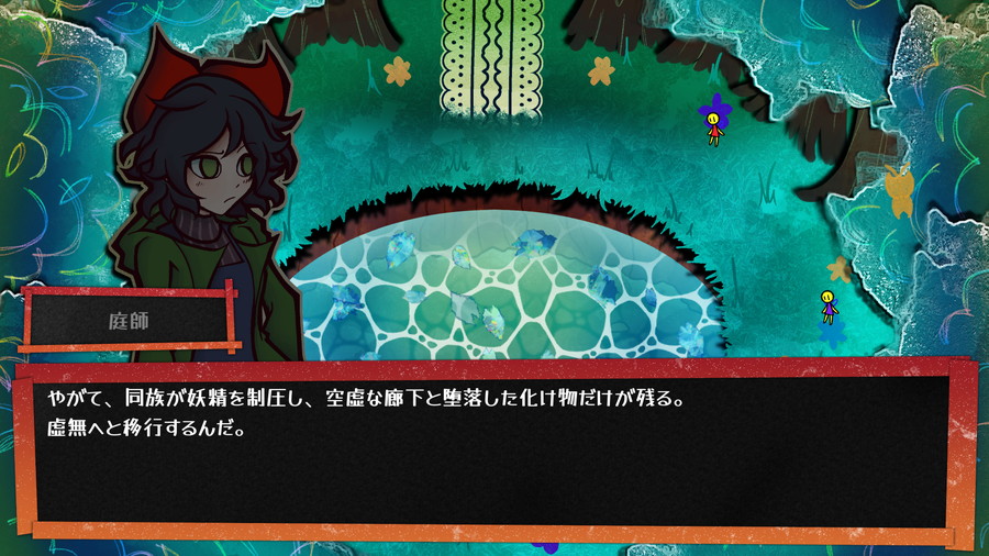 本作は、ポップなイラストのキャラクターたちが不穏な世界に迷い込む見下ろし型のホラーアドベンチャーゲーム。RPG Maker製ホラー風シリーズの第1作であり、抽象的な姿の化け物から逃げつつ脱出ゲーム風の謎解きに挑戦する。