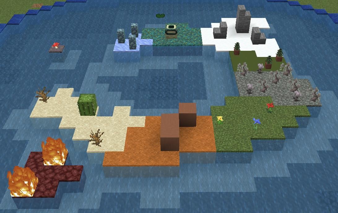 火のネザーラックのことは無視してください、なぜネザーの草を上に置いたのかわかりませんが、そのエリアに要塞があることを確認してください、上のスイレンの葉は沼地であることに注意してください、氷とプリズマリンの壁は氷のスパイクです、できればそこに邸宅やプリズマリンの寺院のようないくつかの構造物を入れてみてください(名前が正しいかどうかはわかりませんが、意味はわかります)人々が実際にこのようなものを見つけることができることに驚いています(笑) by AdDeep9398