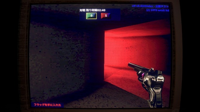『Catch the Flag』はその名の通り、本来は敵陣地内にある旗を自陣に持ち帰るシンプルなFPSです。武器はリボルバーのみで、あまり捻りのないマップが一つだけ用意されたベータ版もいいところの未完成品です。