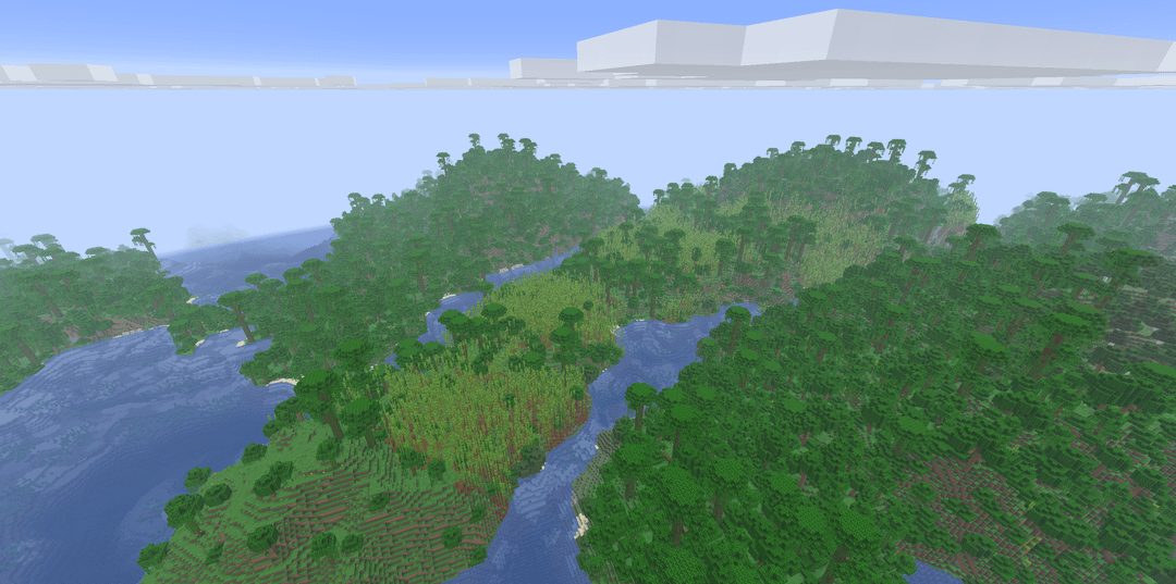 - レンダリング距離を調整すると、ジャングル寺院 (-362、87、358) が竹のジャングルに沿って表示されます。