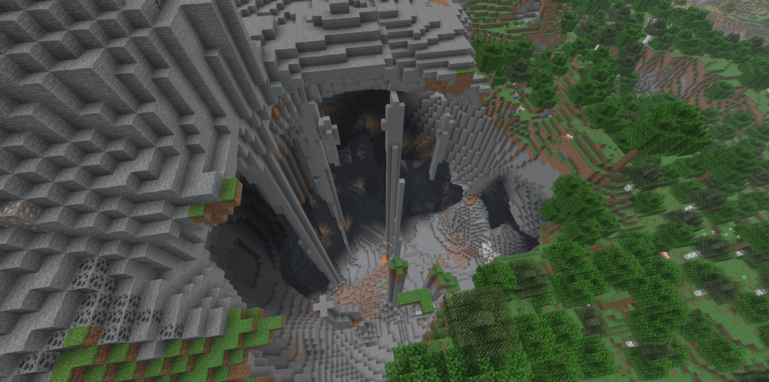 - 巨大な洞窟システムへの入り口 (28、129、84)。ドリップストーン洞窟はすぐに数マイル続くディープダークバイオームに取って代わられます。