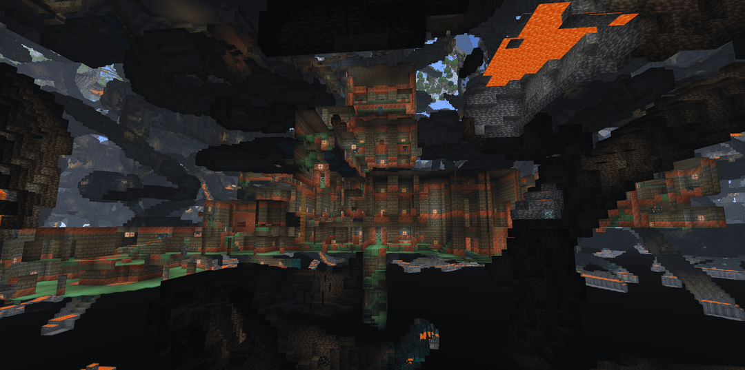 - (-376、-42、-231) 第三村のほぼ真下にある古代都市。溶岩盆地が大きなポータルと交差するなど、奇抜な生成が施されています。