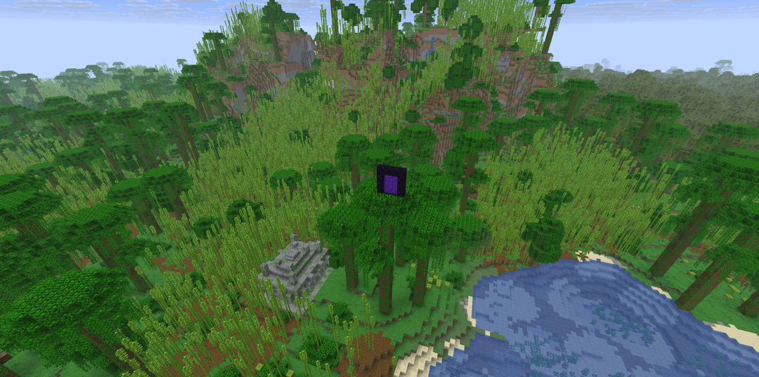 山にネザー ポータルを構築し、最も近いバスティオン レムナント (39、92、220) に移動し、その上にポータルを構築すると、別のジャングル寺院 (342、77、1735) と、絶対に巨大なマングローブの沼地 (198、82、1726) の上に出されることになります。