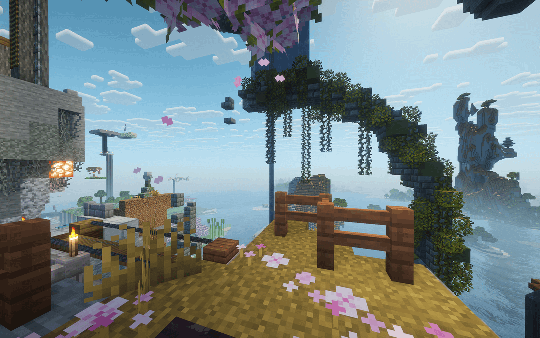 ポータルの背景として滝を作成しましたが、ベンチの視界を妨げたので、リングを作成してそれを分離しました