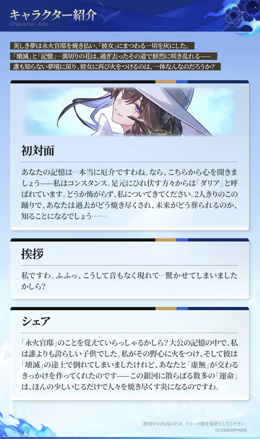 開拓者の皆様、本日は「ダリア(虚無・炎)」のキャラクタープレビューをお届けします。