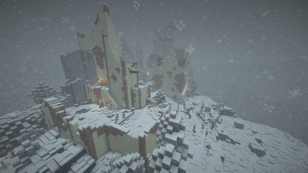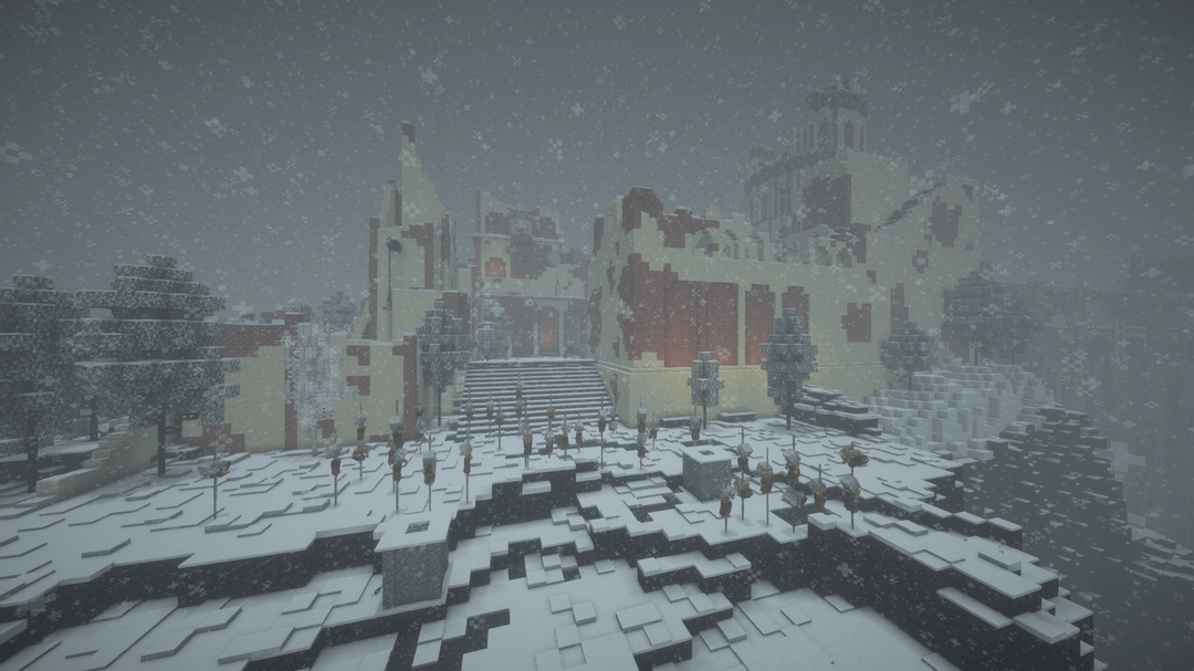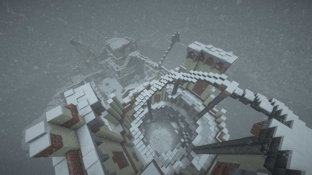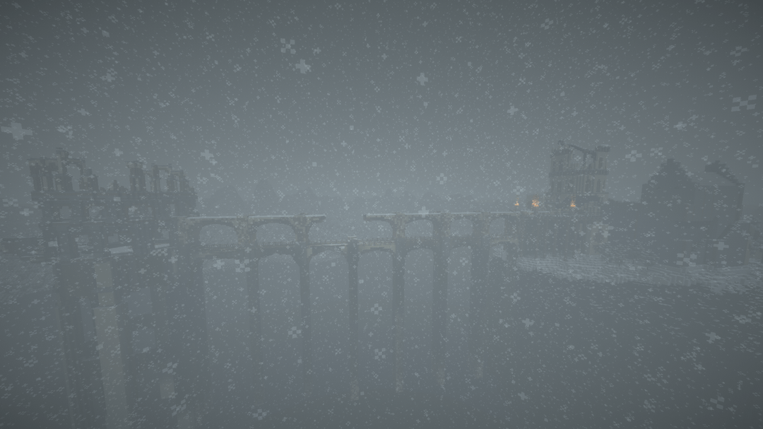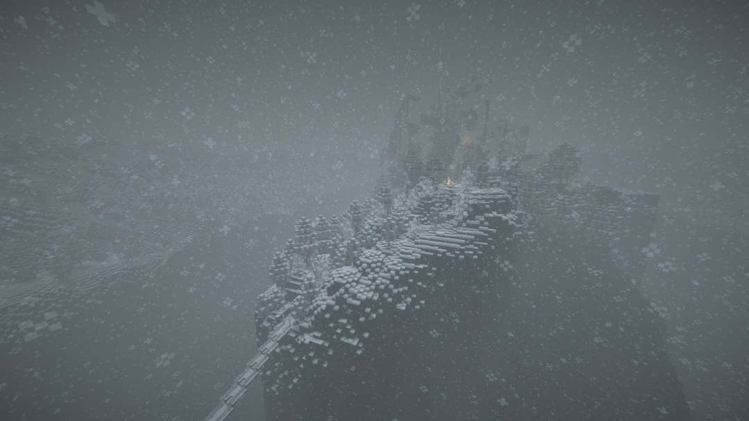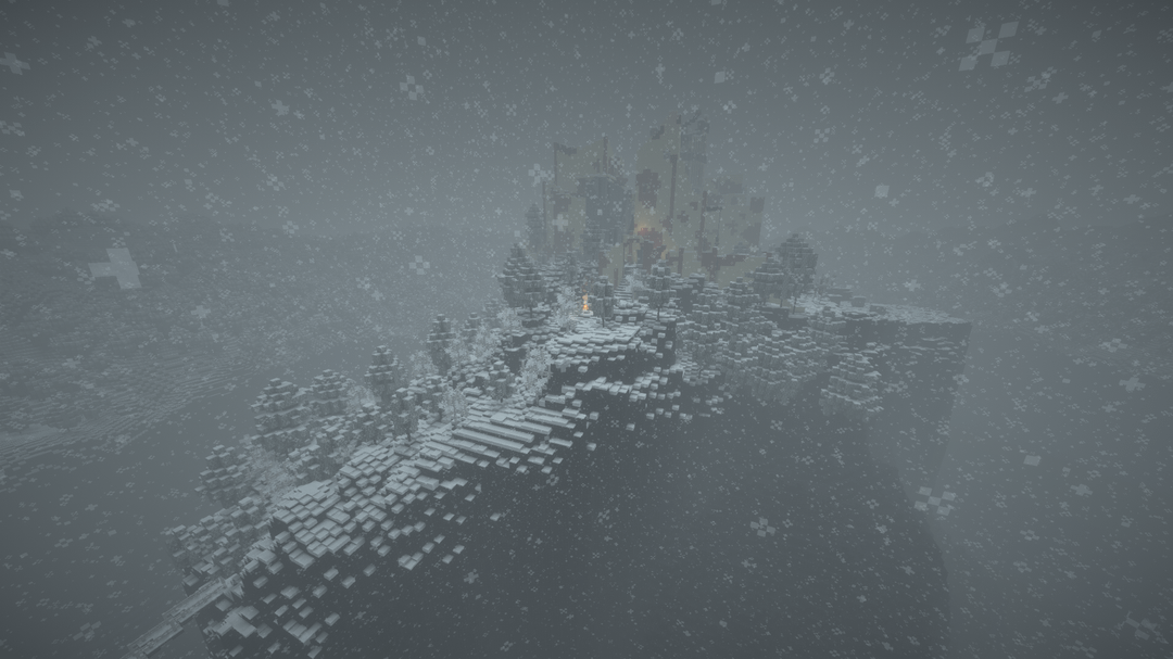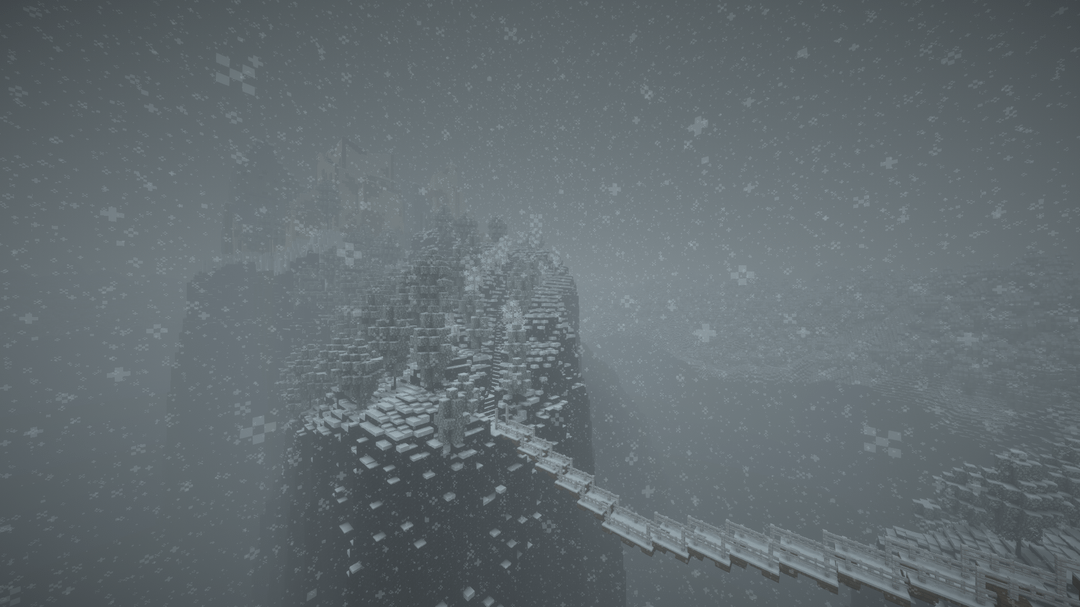 雪の降る天候の中で、遠くの地平線、BSL シェーダーを使用してビデオを録画し、ブロック エンティティ/アーマー スタンドのラグを軽減するためにエンティティ カリング MOD を使用しました。