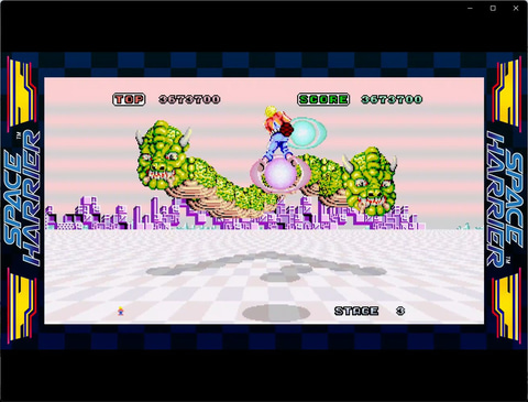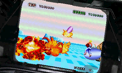 既に購入はできないが、2012年に配信された3DS版「3Dスペースハリアー」では、稼働筐体の挙動を疑似的に再現した機能が搭載されていたのもおもしろかった。