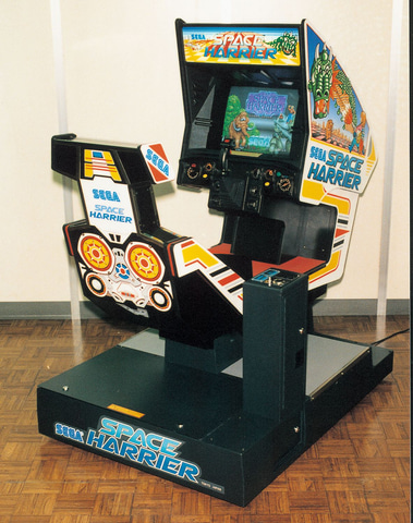 ハリアーの操作に合わせて上下左右に傾く「スペースハリアー」の筐体(※写真提供:セガ)