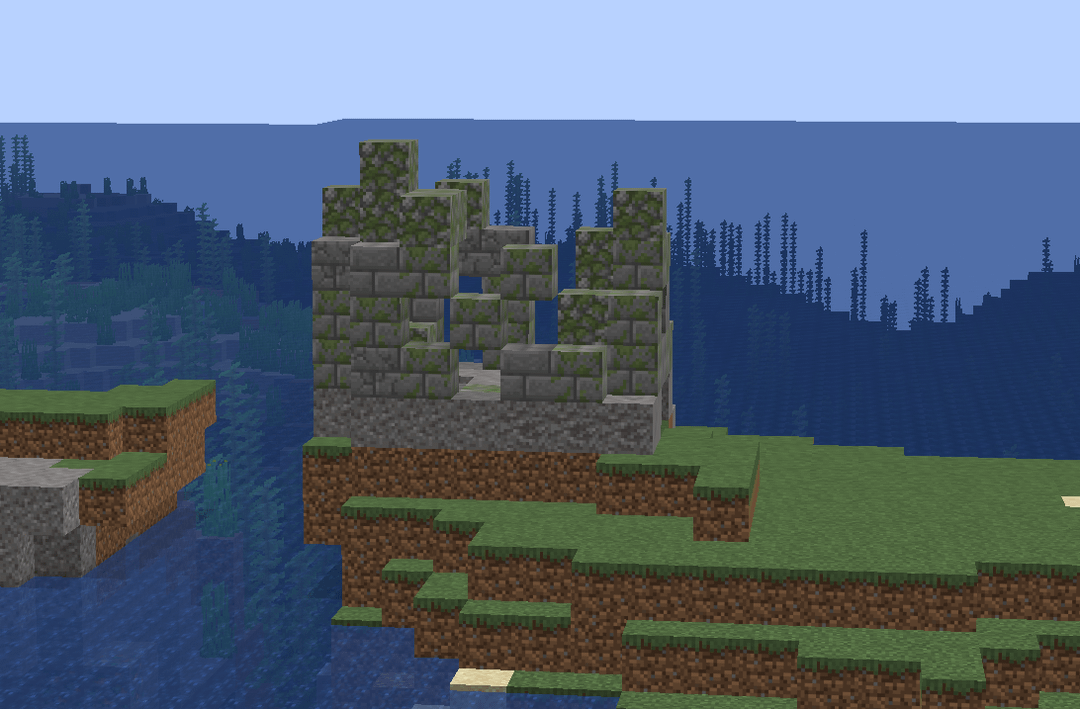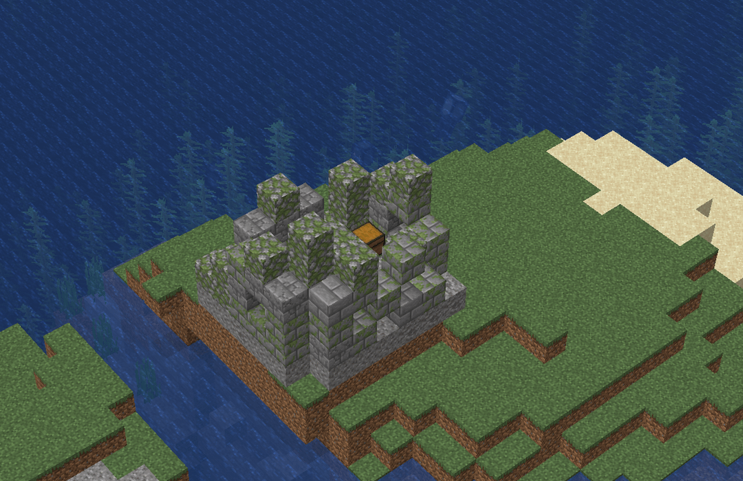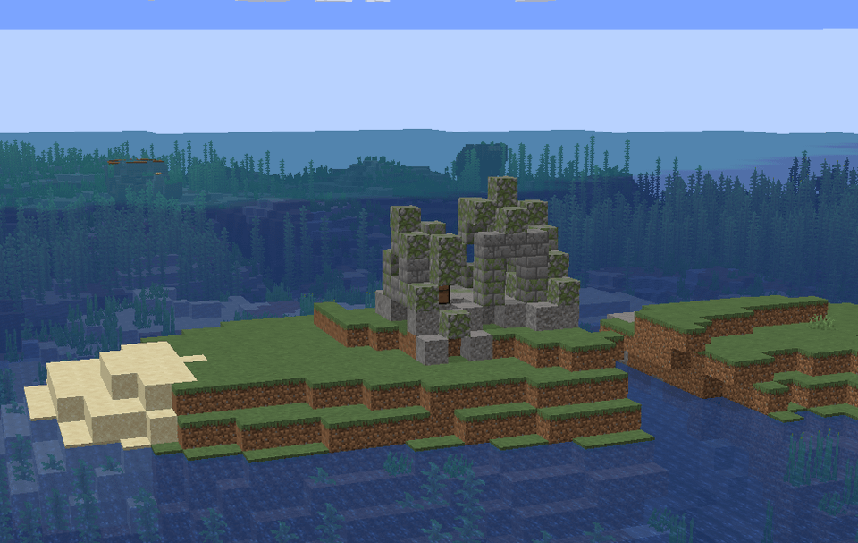 小さな島にある涼しい露出した海洋遺跡 シード: -1327405937 および座標: -1487 65 2718