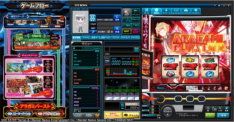 株式会社サミーネットワークスが運営するPC向けパチンコ・パチスロオンラインゲーム「777TOWN.net」(スリーセブンタウン・ドットネット)は、2025年12月15日(月)より、山佐ネクスト株式会社の「スマスロ ゴッドイーターリザレクション」アプリを配信いたします。