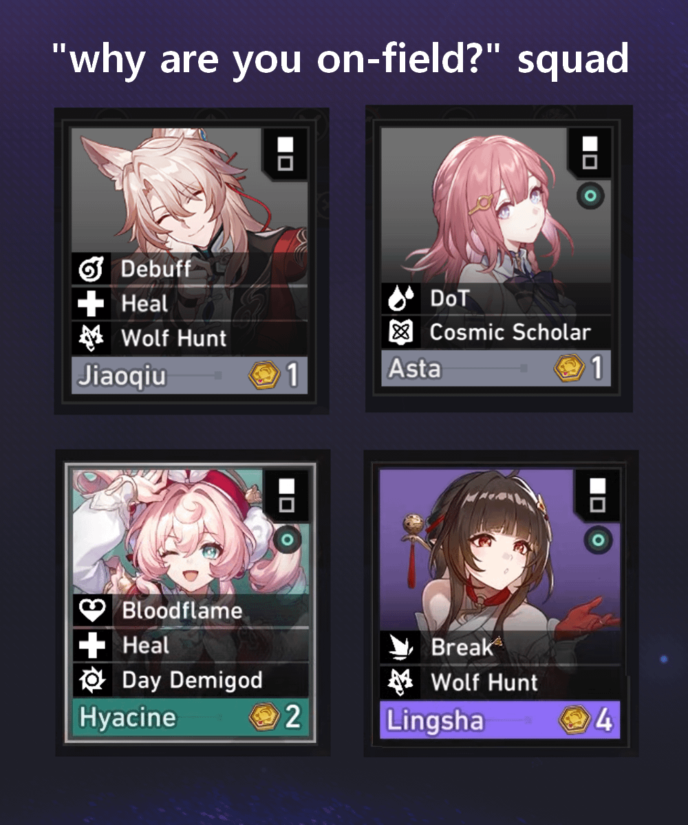 ハイアシンはモノレムだから理解できるが、トレイルブレイザー、ハイアシン、キレネ、サンデーはアグラエア車椅子のようなものには乗せられないので、彼女にはフィールド外の選択肢もあったはずだ。 by uso-da-yo