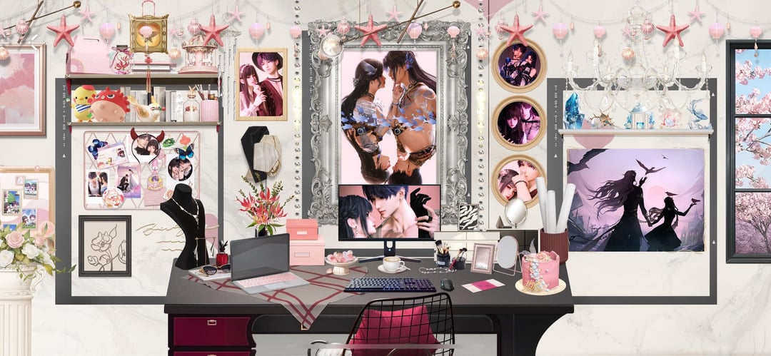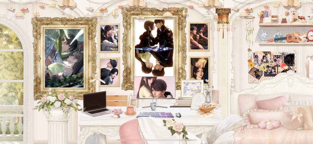 それから私はそれらを巨大なフレームに入れて部屋に飾りました。私は**恋に落ちました**。