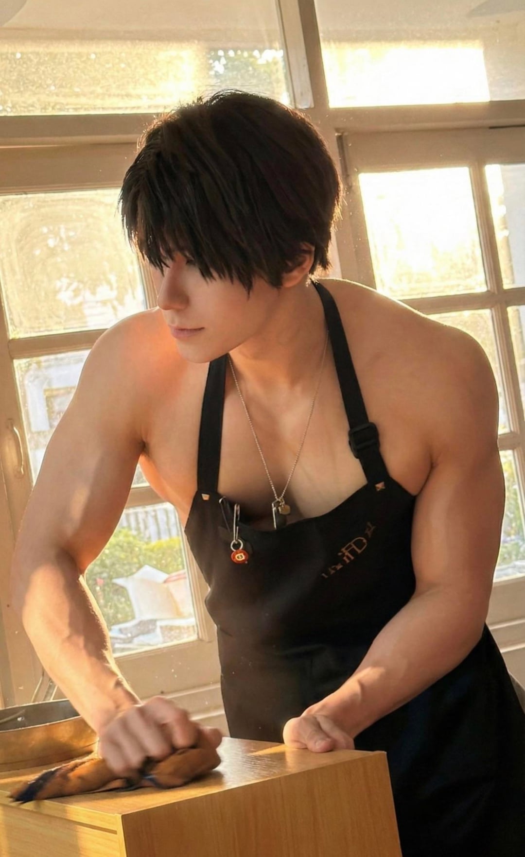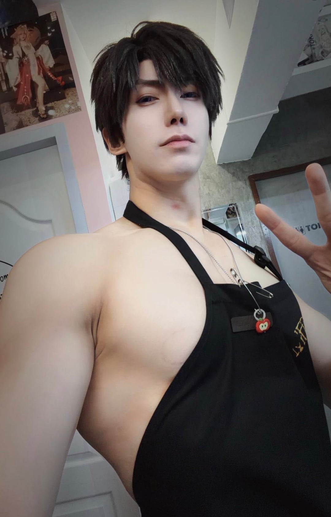 ビーフケーキ・ケイレブのコスプレを早速入手しました!彼は卵、顔、上腕二頭筋を提供しています。朝食の準備ができました 💋(私はキャビネットの中です)