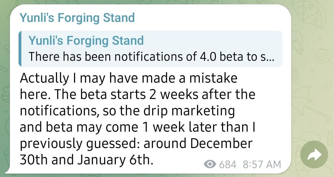 4.0 ドリップ マーケティングとベータ版の開始日 [Possible Correction] (HomDGCat経由)