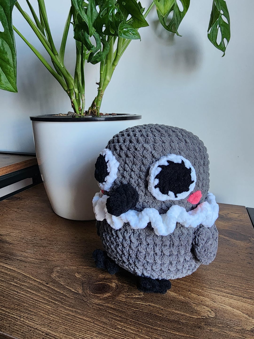 よりドラマチックなネックフリルを加えた、より大きなバージョンを作りました。写真のパターン。これは私が初めて書いたパターンなので、改善が必要な場合はお知らせください。感謝します!
