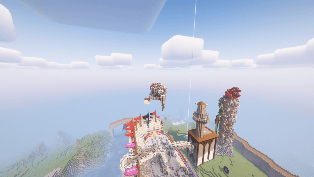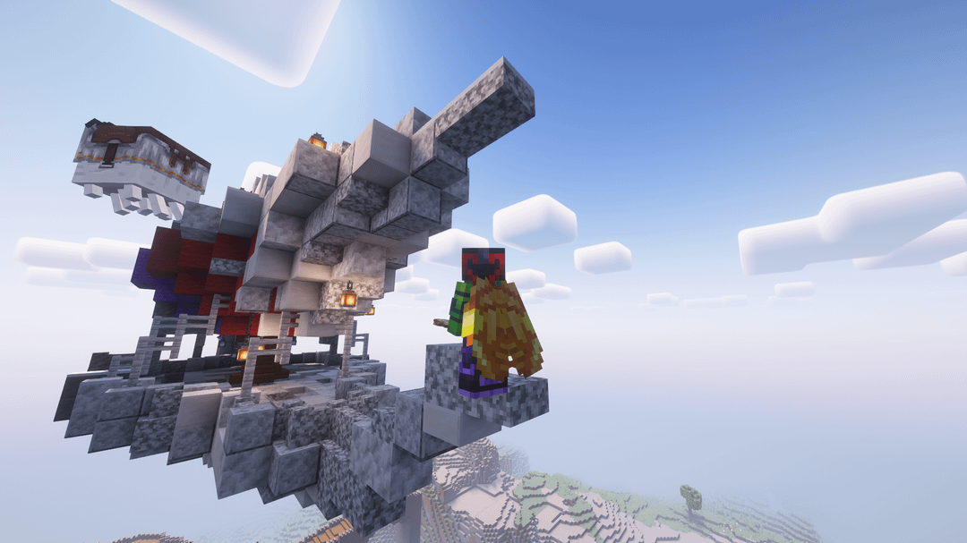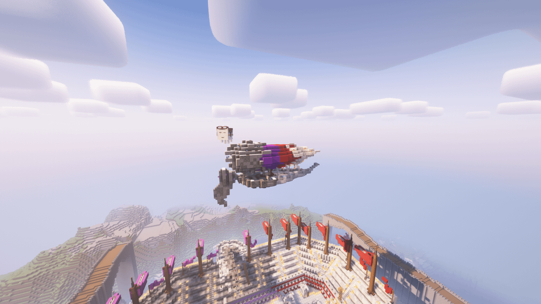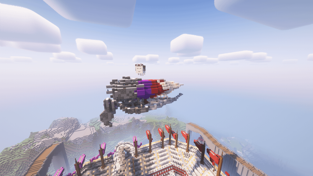 アリーナ用に飛行船を作りました(ガラス越しに見えます)。 私のベースは紫(アメジスト)と赤(ローズ、レッドストーン)をアクセントにしたライトサイドとダークサイドのスタイルです。 ところで、ジェイク・ケルトンのビデオのおかげで後ろのファンが動くようになりました! どう思うか教えてください:) by Character_Shelter820