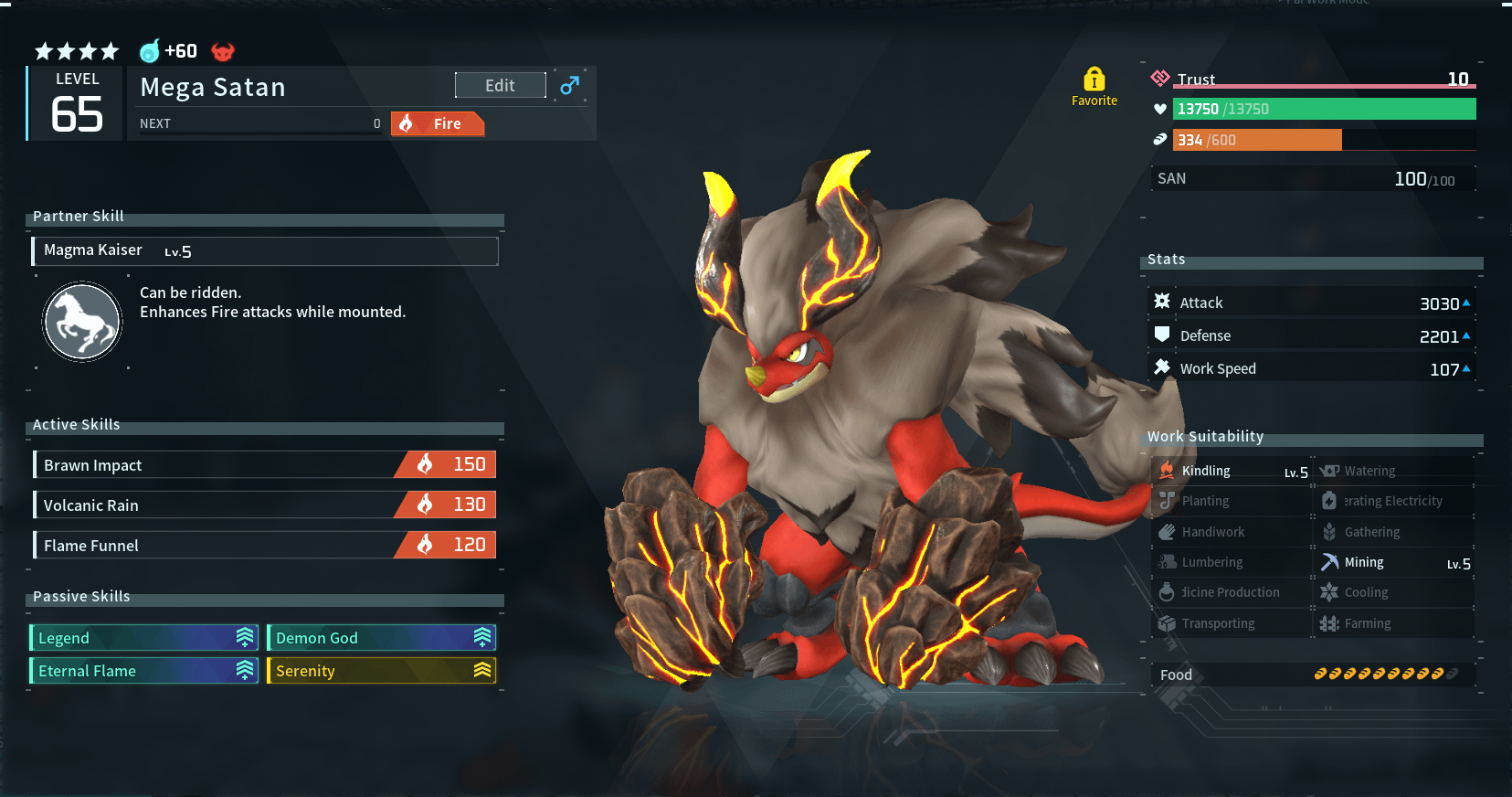 このパルについて私が見つけた 1 つの良い点は、彼を使用して彼の固有のパッシブをより優れた基本ブレザマットに育てることができることです。それを念頭に置いて、純粋にこのパルを苦しめるために私が育てたメガサタンに会いましょう。