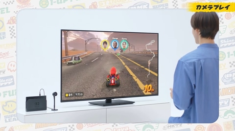 皆で一緒に遊ぶ時に特に活躍するのがUSBカメラ(別売)を繋ぐことで使用できる「カメラプレイ」。ゲーム画面内にプレイヤーの顔が表示されるようになり、口を一文字にして集中する姿や、ミスをしてしまったときの表情などが横を見なくてもわかるので、一層レースが盛り上がるはずだ。