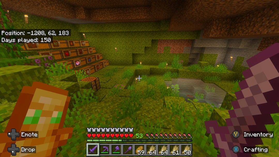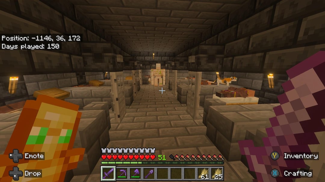 特にTikTokで、プレイの初期段階でかなり非常識なビルドをいくつか見たので、自分のものを共有する必要があると思いました。次に何を構築/実行すべきかに関する推奨事項はありますか?私の次のステップは、最後まで行ってドラゴンを倒し、今後 50 日以内に線画の高速道路を建設することです。経験値ファームが爆破されて数千のシルバーフィッシュでゲームがクラッシュしそうになったとき、平和的なモードに切り替えた以外はチートを使用していません。ハードで 150 日間すべてプレイした