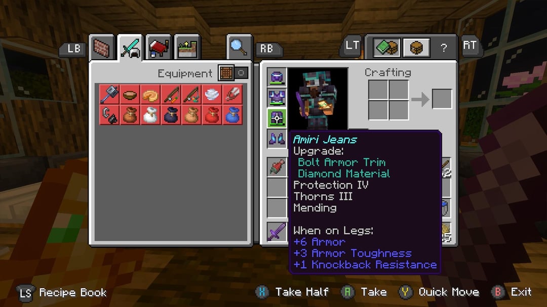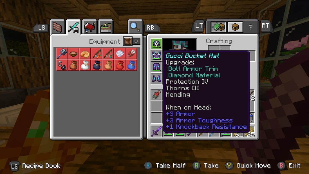 写真にないもの: 私の剣は「セックスカリバー」と呼ばれます (私が非常に成熟していて独創的であることはわかっています) 切れ味 5、略奪 3、修復。そして、私のブーツはグッチのビーチサンダルと呼ばれるもので(これも非常に独創的であることを知っています)、フェザーフォールリング4、Mending、Thorns 3、Prot 4、そして覚えていない他の2つのエンチャントが付いていると思います。