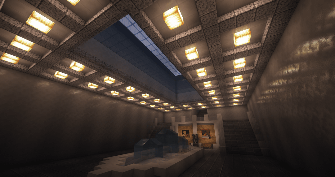 広場にはプールがあり、底にはガラスがあります。涼しい天窓のように機能します。