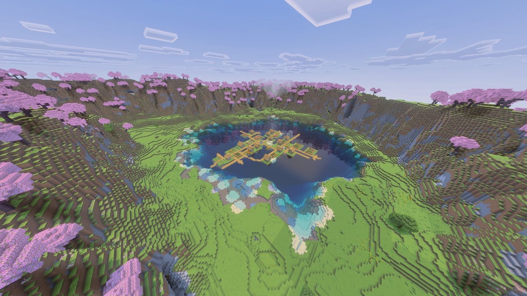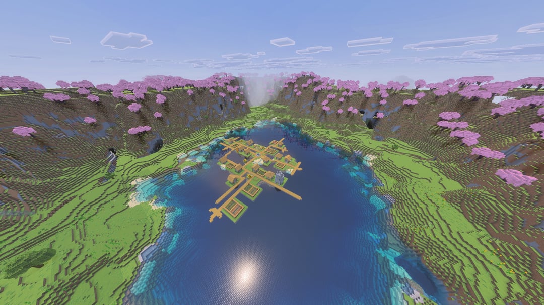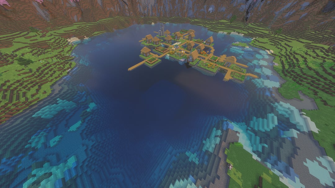 ガールフレンドの PlayStation で誤ってワールドを作成してしまいましたが、それは私が見た中で最も美しいスポーンの 1 つでした。湖はほぼ岩盤に達しており、村のすぐ下には試験室があります。リングのすぐ外側に別の村があり、ほぼすべてのバイオームがリングから 1,500 ブロック以内にあります。リングは Java で生成されますが、村は脇にあり、裁判室はありません。ワールドシード:-2032795982907864146