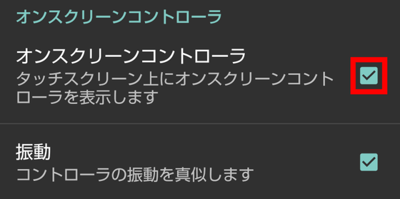 「オンスクリーンコントローラ」にチェックを入れ、端末の戻るボタンをタップして戻ります。