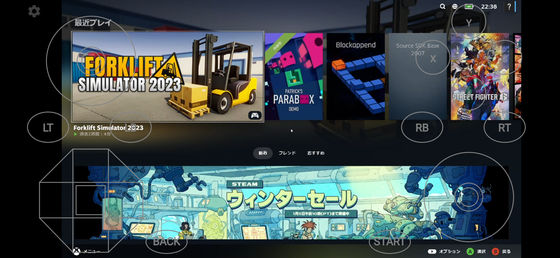 仮想コントローラーでもメニュー操作が可能で、ゲームをスタートするとFPSやアクションゲームで使えるほどではありませんが、スムーズに操作できます。
