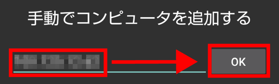 VPN上のホストのIPアドレスを入力して「OK」をタップ。