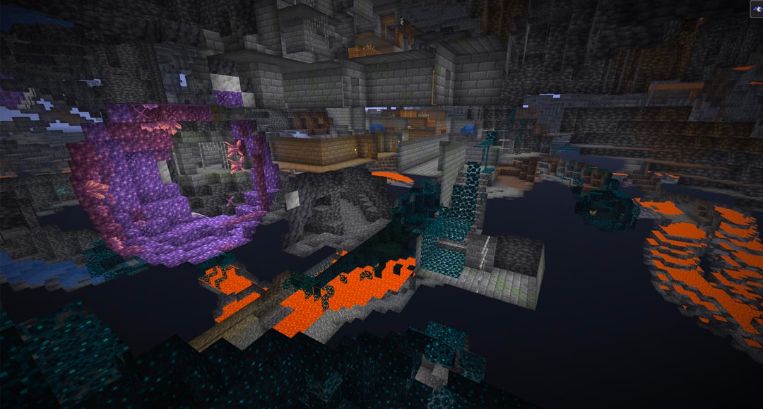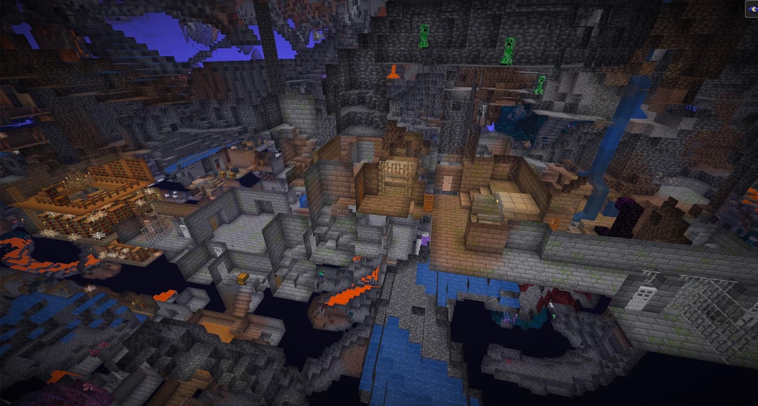 監視員、廃坑、そしていくつかのモブスポナーに直接つながっている要塞を見つけました。要塞内には廃墟のポータルも出現します。ポータルとその胸部には、ポータルを発火させるのに十分な黒曜石があり、そのエリアをいくつかのダイヤモンドの鉱脈が取り囲んでいます。 シード: 8494901943553296045 by NovixTD
