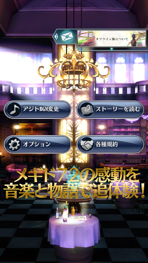 サービス終了後は、オンラインでの通信を必要とする一部の機能や魔宝石やソロモンチケットを利用する機能を除き、「メギド72」のプレイデータを引き継いで遊ぶことができるオフライン版が配信。ゲームを彩るストーリーやBGMなどを楽しめる。