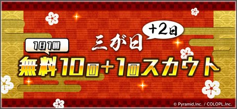 2026年1月1日(木)0:00より、無料スカウトが毎日行える「三が日+二日 無料10回+1回スカウト」や、★4キャラが確定入手できる各種「★4キャラ1人確定スカウト」など、様々な「お正月アップデート」をゲーム内にて開催しております。