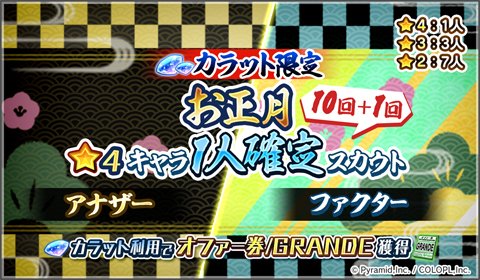 ●『カラット限定アナザー/ファクター★4確定スカウト』開催中!